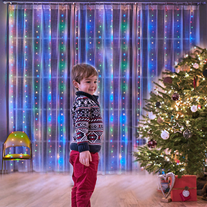 Curtain Lights, 8 Modes Fairy Lights String with Remote Controller, IP64 Waterproof, USB Plug in Twinkle Lights for Weddings, Parties, Backdrop, Wall Decorations, 300 Led( 9.8x9.8Ft, Multicolor)