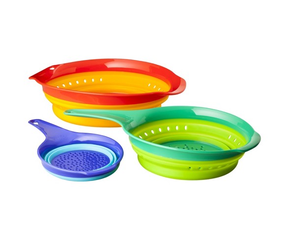 Description Squish collapsible kitchen colanders make todays storage challenges disappear. The sturdy construction means that our colanders act like colanders!Number of Pieces: 1Material: PlasticDimensions (Overall): 20.4 inches (H) x 3.2 inches (W) x 13.0 inches (D)Care & Cleaning: Dishwasher-safeFinish: GlossyWeight: .82 poundsFeatures: Non-Slip Grip, Nonslip Base, CollapsibleProtective Qualities: Rust-resistant, stain-resistantWarranty: 1 year limited warranty. To obtain a copy of the manufacturer's or supplier's warranty for this item prior to purchasing the item, please call Target Guest Services at 1-800-591-3869Warranty Information:To obtain a copy of the manufacturer's warranty for this item, please call Target Guest Services at 1-800-591-3869.