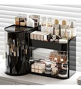 This Crystal Amber rotating makeup organizer features a reinforced base enabling smooth 360° silent rotation, designed to hold over 30 makeup brushes, 20 skincare products, and multiple lipsticks and accessories. Made from high-quality, eco-friendly PET material, it doubles as a versatile vanity organizer, combining durability with elegant design. Highly rated for simplifying daily routines, it’s a must-have for professionals seeking both style and function.
