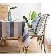 The LINENLUX Stylish Square Rectangular Tablecloth is a 53x70 inch premium cotton-linen blend cover featuring embroidered striped and plaid patterns with tassel edges. Designed for durability and easy care, it’s machine washable and colorfast, perfect for elevating dining experiences indoors or outdoors while seating up to six people.