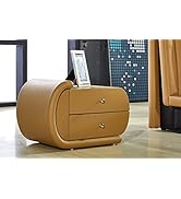 This Container Direct Faux Leather Contemporary Nightstand combines a sleek gold finish with durable engineered wood and chrome legs. Featuring two spacious drawers and a compact 19x20x17 inch footprint, it offers a stylish, organized solution for modern bedrooms. Upholstered in premium faux leather, it delivers a luxe look that fits perfectly in any contemporary or new traditional decor.