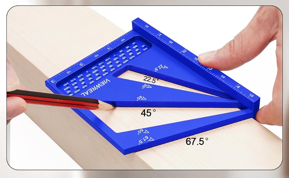 - High-Quality Material: Constructed from robust aluminum alloy for longevity, this woodworking square withstands the rigors of any workshop. Preset angles of 22.5°, 30°, 45°, 60°, 67.5°, and 90° cater to diverse crafting needs