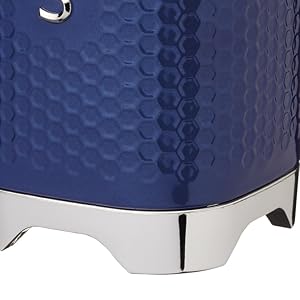 The KitchenCraft Lovello Textured Sugar Canister features a stylish geometric hexagon pattern in sophisticated Midnight Navy. Measuring 11 x 11 x 19 cm, it offers a compact, space-saving design with a secure snap lid to keep sugar fresh. Its sturdy construction includes a chrome-style base with anti-scratch pads to protect surfaces. Part of the Lovello collection, this canister combines retro-inspired charm with modern functionality, perfect for coffee, tea, and baking enthusiasts seeking organized elegance.